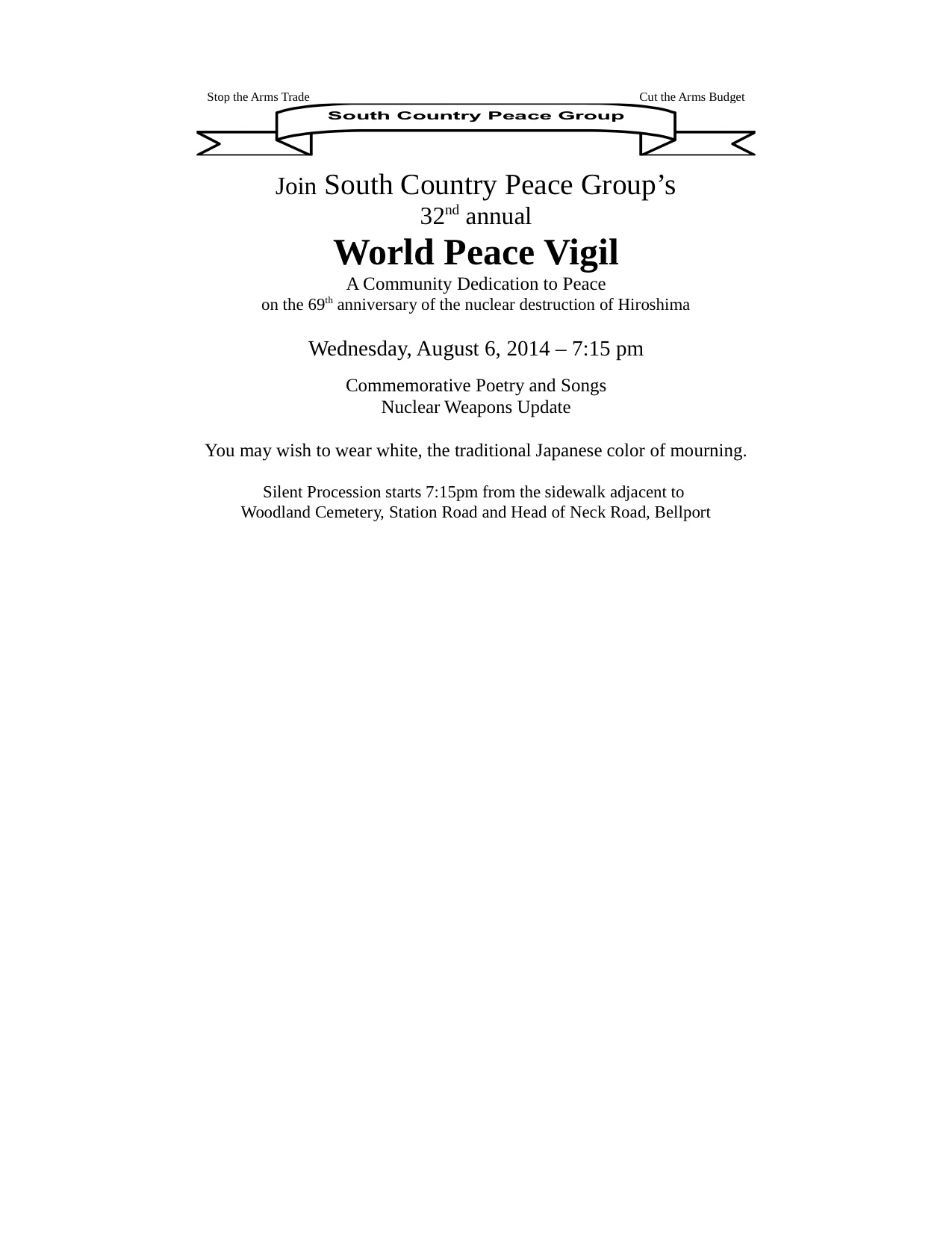 On Wednesday August 6th, the South Country Peace Group will be holding their vigil to commemorate the atomic bombings of Hiroshima and Nagasaki